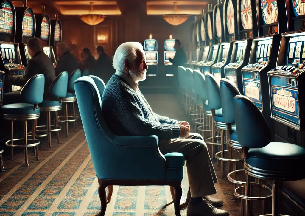 A nyerőgépek világa első pillantásra rideg és gépies. Villódzó fények, ismétlődő hangok, algoritmusok által vezérelt véletlen. De aki elég sokáig figyel, észreveszi: a gépek körül emberek mozognak, saját szertartásaik szerint. Ugyanaz a mozdulat, ugyanaz a gép, ugyanaz a szék. És olykor: ugyanaz a hely, amit senki más nem érint – csak egyvalaki. A kék szék…